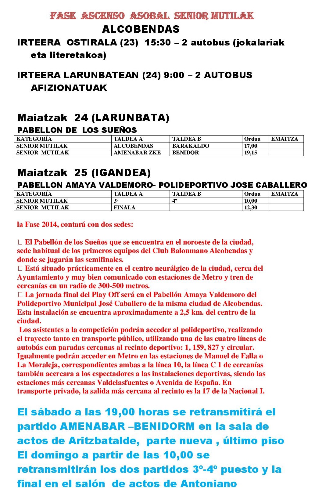 Ordutegiak Maiatzak 24 eta 25eko partiduak Date: 21 maiatza, 2014Author: zkeeskubaloia 0 Iruzkinak Partekatu: Share on X (Opens in new window) X Share on Facebook (Opens in new window) Facebook Atsegin dut Kargatzen... Related