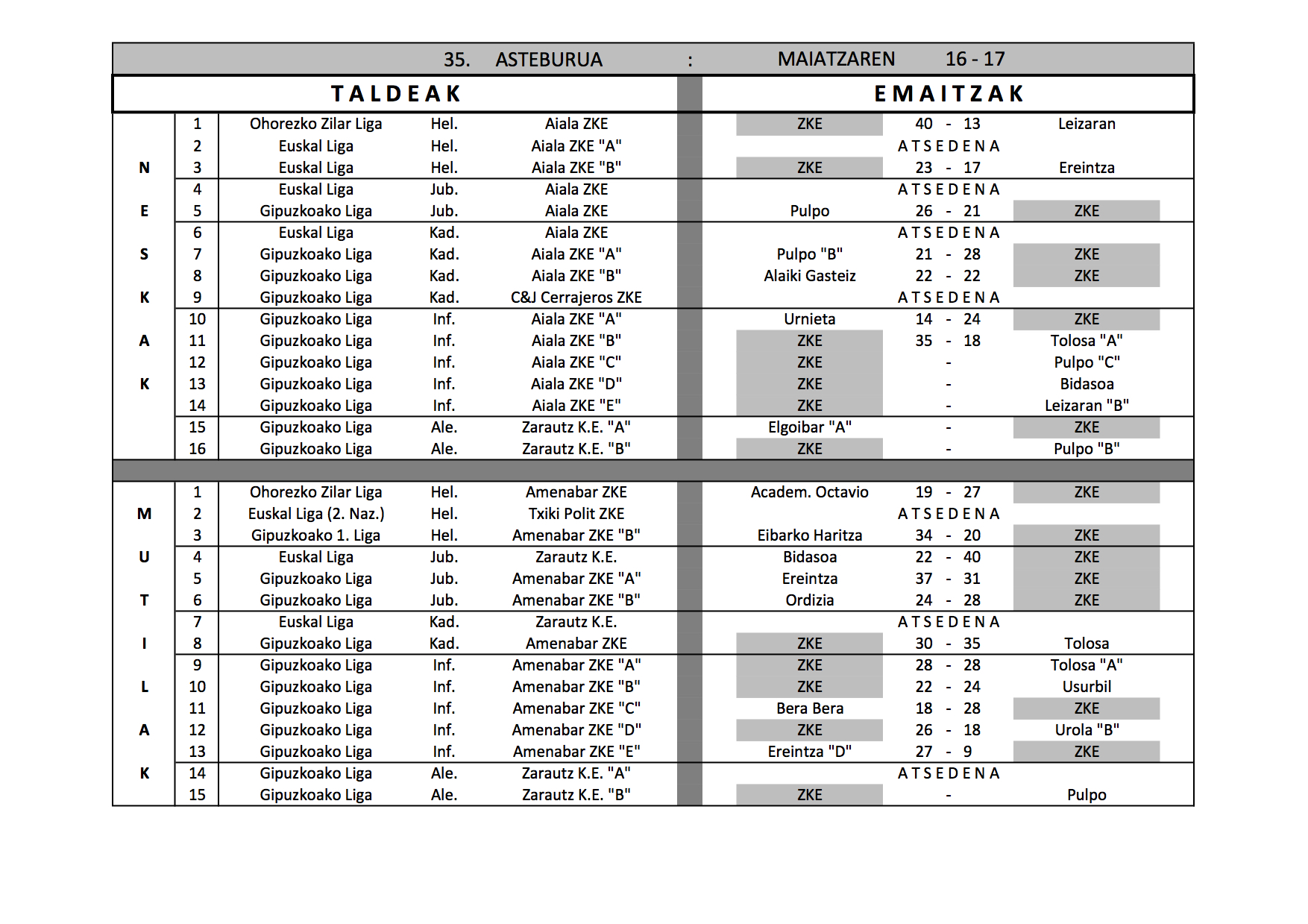 Emaitzak Asteburuko emaitzak Date: 17 maiatza, 2015Author: zkeeskubaloia 0 Iruzkinak Partekatu: Share on X (Opens in new window) X Share on Facebook (Opens in new window) Facebook Atsegin dut Kargatzen... Related