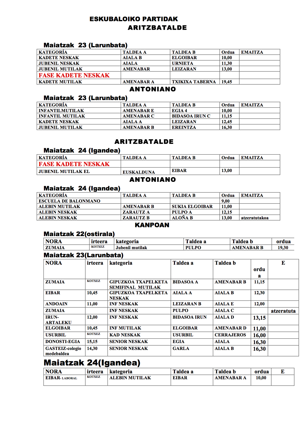 Jardunaldiak Maiatzak 22, 23 eta 24ko partiduak-ALDAKETAK Date: 20 maiatza, 2015Author: zkeeskubaloia 0 Iruzkinak Cambio en el horario de salida del partido de Inf. Mutilak (Elgoibar-Amenabar D). El nuevo horario es a las 9:45 Partekatu: Share on X (Opens in new window) X Share on Facebook (Opens in new window) Facebook Atsegin dut Kargatzen... Related