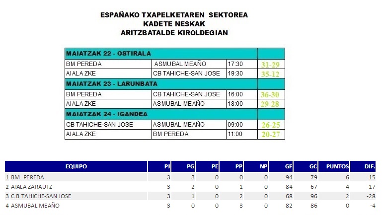 Berriak Kadeteak: neskak bigarren, mutilak hirugarren. Denak, txapeldunak Date: 25 maiatza, 2015Author: zkeeskubaloia 0 Iruzkinak Zorionak, neskak! Honaino iristeagaitik, eta azken momenturaino borroka egiteagaitik. _________________________________________________________________________ Zorionak, mutilak! Egin duzuen urte onarengaitik. Segi horrela! Partekatu: Share on X (Opens in new window) X Share on Facebook (Opens in new window) Facebook Atsegin dut Kargatzen... Related