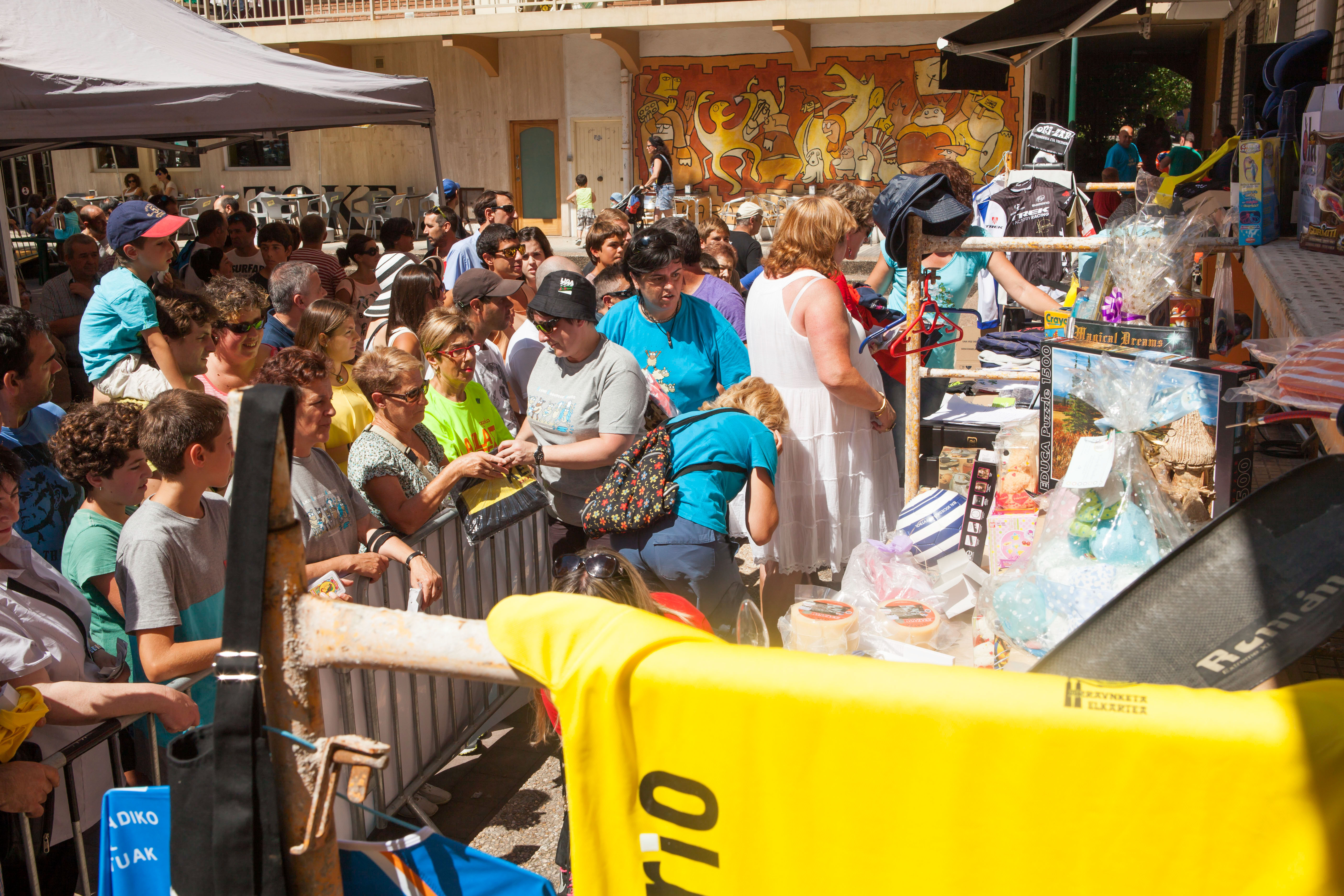 -la tómbola, con más de 3000 boletos que se vendieron en menos de una hora, y con regalos muy interesantes: una tele, cenas, camisetas firmadas por Xabi Alonso, por Illarra, por todos los jugadores de la Real, del Athletic, juguetes…